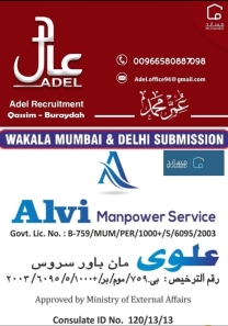 Registered & Approved by the Ministry of Overseas Indian Affairs, Government of India & the Royal Saudi Arabia Consulate in Mumbai, India.